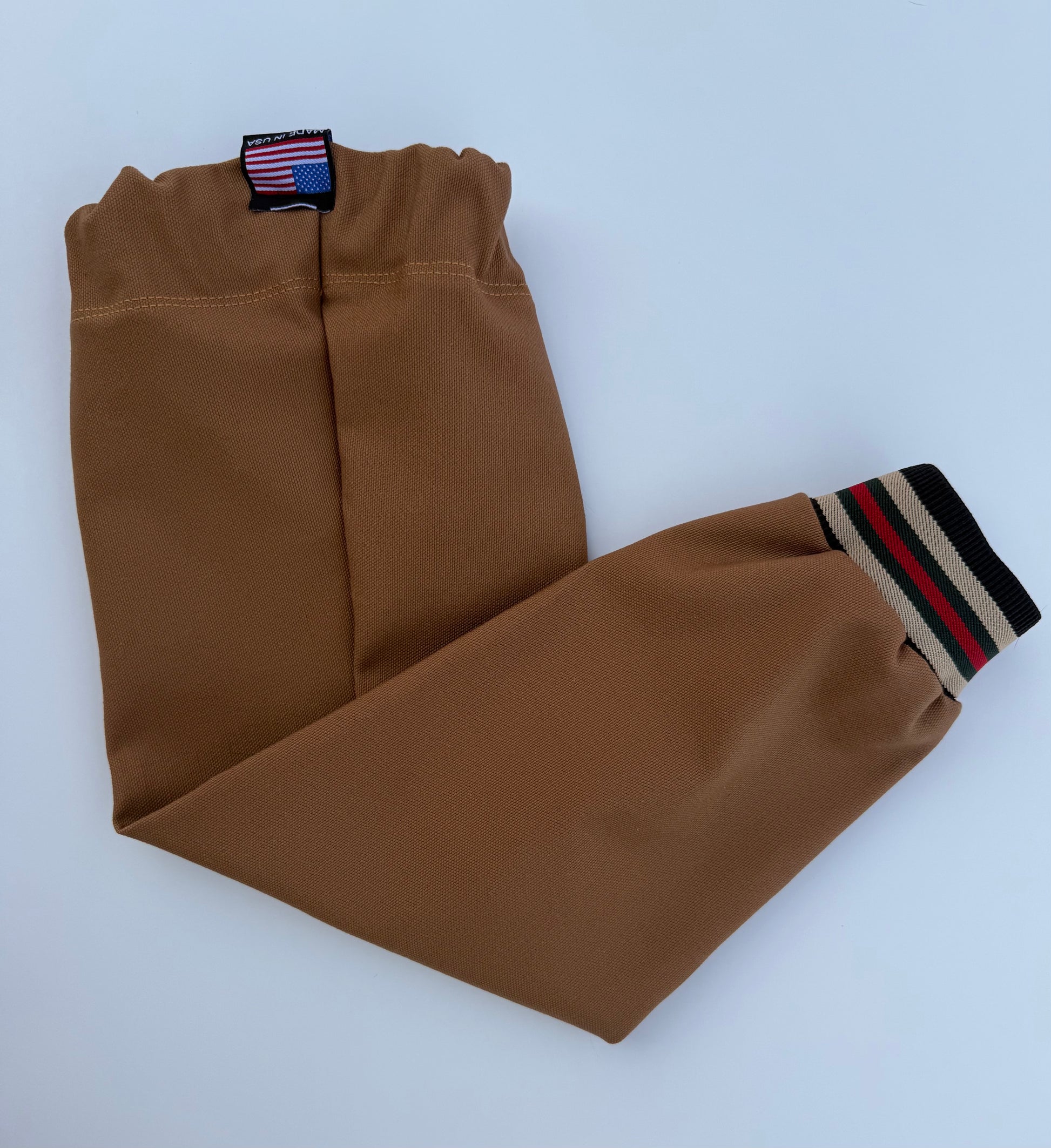 14 oz FR brown canvas fabric with woven “old school style” elastic